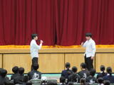 講演のあとに、3年生の合唱「信じる」を披露しました。そして、全校で歌った「believe」は小学生と一緒に歌うことができました。