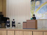 12月24日(水) 表彰式と2学期終業式を行いました。表彰式では、多くの生徒が表彰され、温かい拍手が送られました。また、終業式では2学期を振り返り、3名の生徒が素晴らしい作文を発表してくれました。今学期は新人戦やエイサー、文化祭と様々な行事がありましたが、どの行事も一生懸命取り組んでくれました。3学期も元気な姿であえることを楽しみにしています。