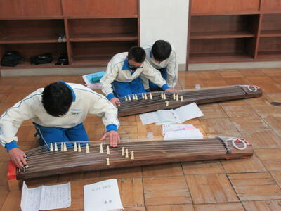 2月26日(水) 2年生の音楽の授業で箏の学習を行いました。箏曲「六段の調」を、みんなで楽しく学ぶことができました。日本の伝統的な楽器の音色や響きの美しさに心をひかれ、どの生徒も上手に演奏する技能を身に付けました。