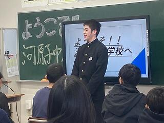 2月7日(金) 本校で令和7年度に入学する新入生の体験学習と保護者説明会が行われました。4つの小学校から39名の入学予定者が参加しました。生徒会役員が中学校生活のガイダンスを行った後、授業参観・部活動見学を行いました。目をキラキラさせて話を聞き、見学している児童が多く見られました。4月からが本当に楽しみです。保護者の皆様もご来校ありがとうございました。