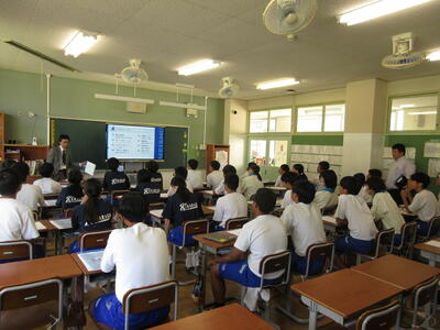 7月8日(火) 3年生が高校から講師の先生をお迎えして「進路学習会」を行いました。部活動を引退したばかりの生徒たちに、高校を選ぶポイントや今、何をすべきかということをわかりやすくアドバイスしていただきました。複数の保護者がオンラインでパソコン室で参加しました。いよいよ受験生モードです。