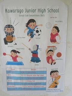 河原子中人権宣言 1・2年生からの総体の応援メッセージ ALT作成の総体ポスター