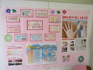 保健室前の健康コーナー 図書室前の先生のお気に入りの本紹介