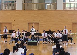 続いて、明日から行われる県総体出場選手の決意表明を聞き、あさって本番の吹奏楽部の演奏を全員で聴きました。最期のコンクールに全てをかけている3年生の気迫が感じられるすばらしい演奏でした。ぜひ、力の限り全力をつくし、部員全員がひとつになり、悔いのない演奏ができるよう願っています。