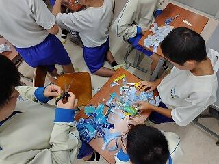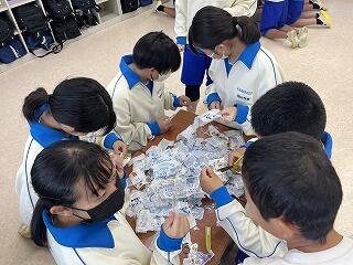 若竹祭のステージ舞台が完成しました。河原子中ではWe Cleanでペットボトルも毎月収集しています。しかし、ラベルは再利用できず捨てるしかありませんでした。そこで今回そのラベルを利用して「作品部」が、宇宙の惑星をイメージして作成しました。みんなに見てもらえることが楽しみです。