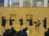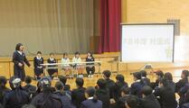 生徒会が中心となり、1年生に向けて、河原子中の生徒会活動を紹介しました。