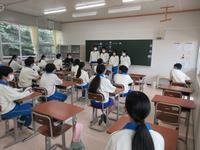 朝、ワークブック等の教材販売があり、そのあといよいよ通常時間割での授業がスタートしました。1年生にとっては、教科ごとに先生が替わったり45分授業が50分になったり、算数が数学へ、英語は週に4時間も学習することになります。