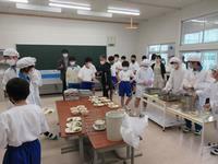 1年生はなかなかそうはいかなかったようで、でも給食は今日から始まります。給食当番だけは取り急ぎ決めねばなりません。配膳までには間に合ったようです。1年生の学級員は40人。中学校の40人分のおかずは大量、大重量となります。なので食缶等は2つに分けて持ってきてもらっています。
