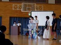 1年生入場のあと、校歌斉唱(久しぶりに歌いました)。委員会紹介では、各委員会の特徴ある取組が紹介されました。部活動紹介では、どの部も趣向を凝らした発表を見せ、全部の部活動が楽しそうで、ますます迷ってしまいます。