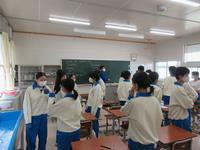 避難経路(第1避難経路)と避難場所(今回は悪天候のため体育館に変更)の確認はできたでしょうか。突然の災害でも、先生の指示に従い、落ち着いて安全に行動することが大事です。避難時の約束「押さない、駆けない、しゃべらない、戻らない」を守り、みんな真剣に取り組んでいました。